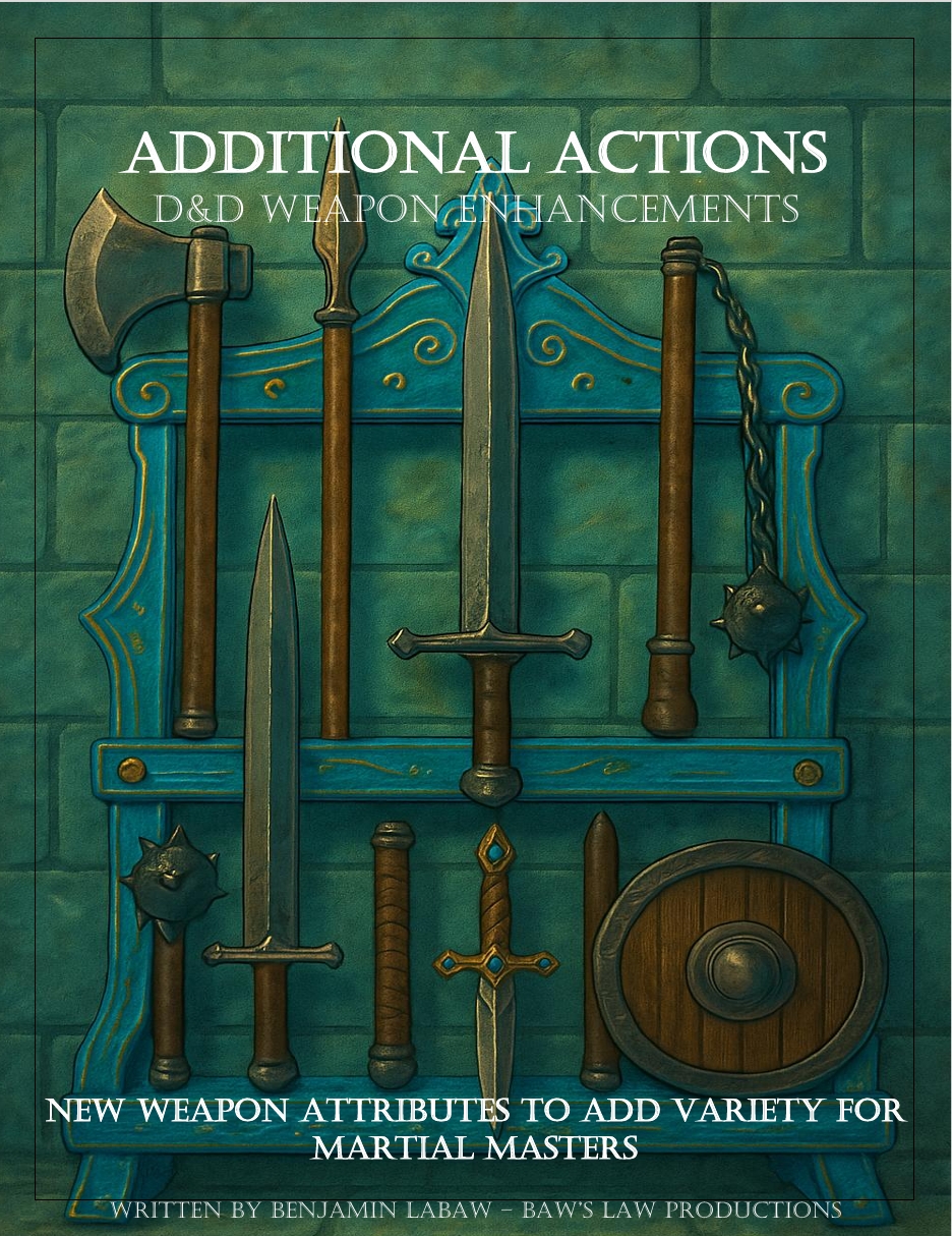 Magic is might in D&D 5e, which leaves martial classes far behind. Fighters and such are left making boring basic attacks with their baseline classes. Being a physical combatant should be cooler!! Enter "Additional Actions", a 5e supplement I created to address this issue. It lists six new features free to martial weapons...adding much needed variety and balance. Check out this mini-module if you want your martial archetypes to lay the smackdown on well-deserved enemies!